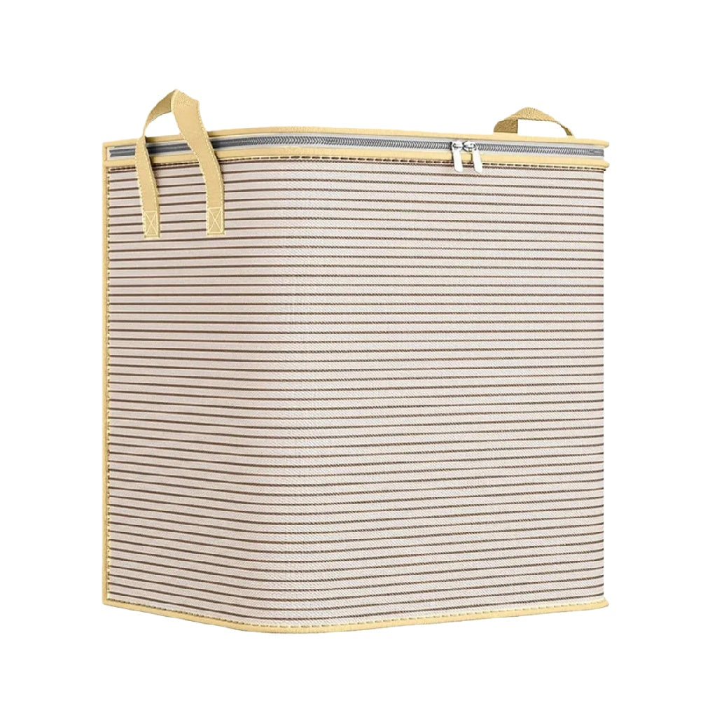 Caja de Almacenamiento de Tela a Rayas con Cremallera y Asas