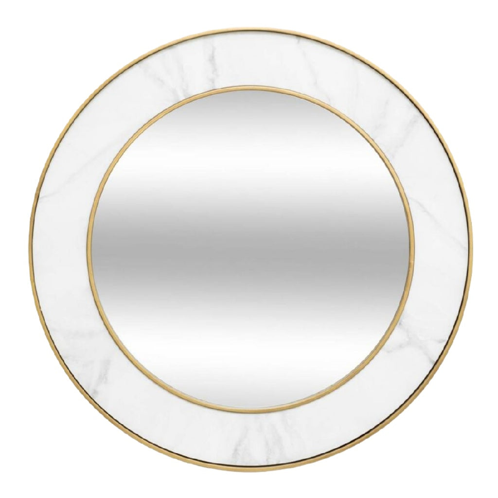 Espejo de pared redondo con marco de mármol y detalles dorados
